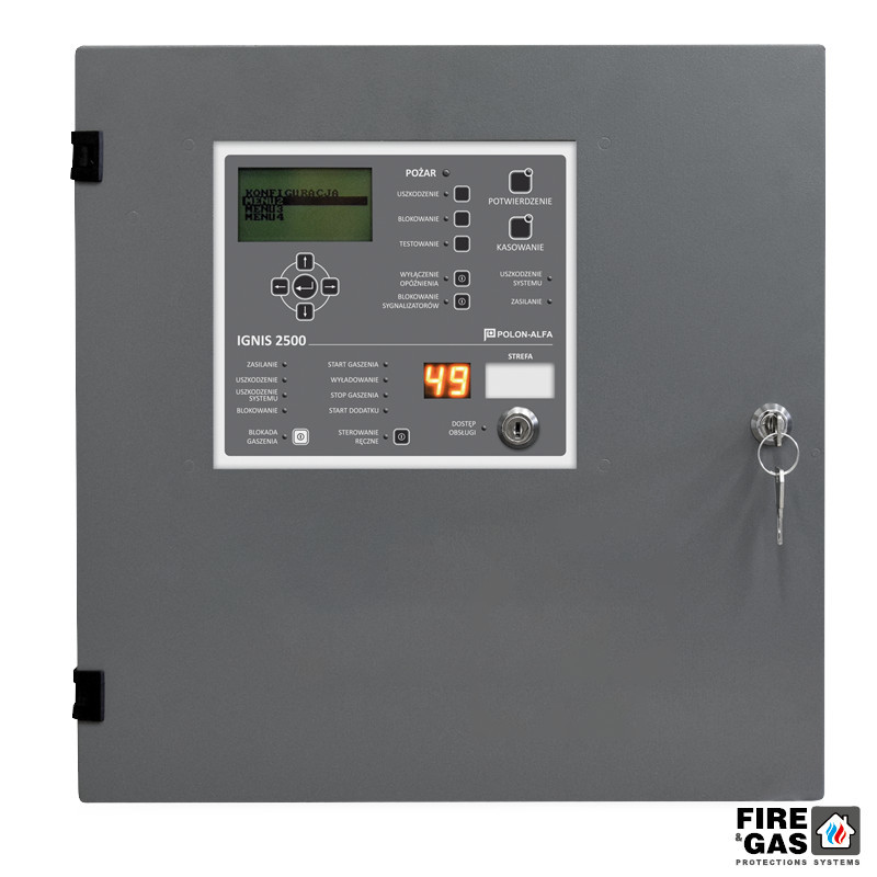Jednostrefowa, adresowalna centrala automatycznego gaszenia Polon IGNIS 2500AR umożliwia wykrycie pożaru, sterowanie stałymi urządzeniami gaśniczymi w celu jego ugaszenia, jak i monitorowanie przebiegu samoczynnego gaszenia. Centrala IGNIS 2500AR Polon-Alfa współpracuje z konwencjonalnymi czujkami pożarowymi szeregu 40, jak i przyciskami sterowania gaszeniem (PU-61, PW-61) czy sygnalizatorami optycznymi i akustycznymi. Po zdiagnozowaniu pożaru w danej strefie gaszenia, centrala IGNIS 2500AR inicjuje dwuetapowy proces automatycznego gaszenia pożaru. Podczas pierwszego etapu (OSTRZEŻENIE) uruchamiane zostają sygnalizatory optyczne i akustyczne oraz następuje ewakuacja ludzie ze strefy gaszenia. W trakcie drugiego etapu (GASZENIE) centrala automatycznego gaszenia IGNIS 2500AR przesyła do urządzeń gaśniczych sygnał nakazujący uwolnienie środka gaśniczego, przez co odbywa się gaszenie pożaru.