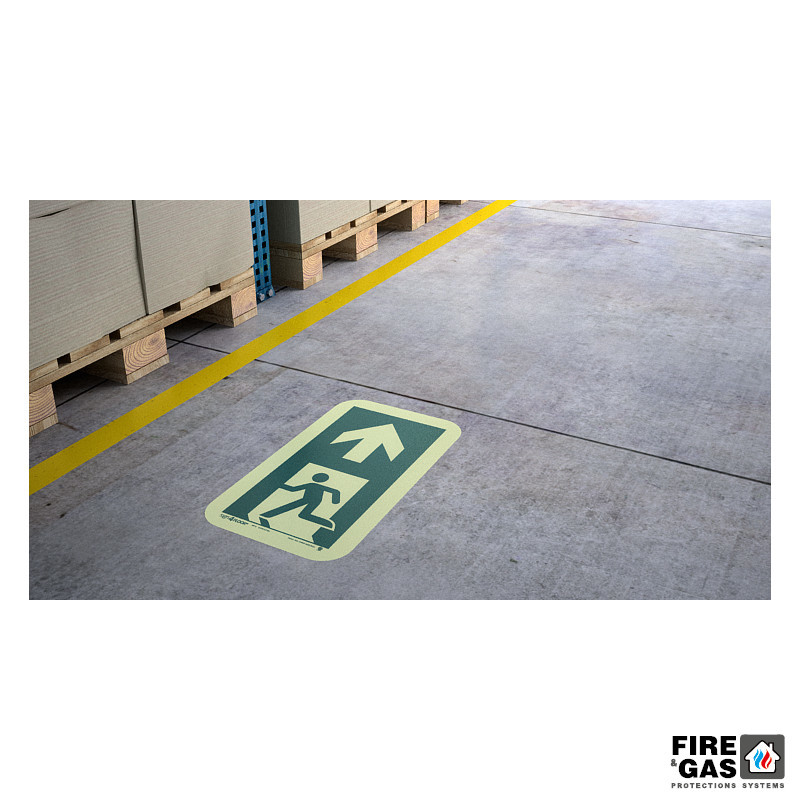 Znak podłogowy Wyjście ewakuacyjne na wprost 52,5x30 E304-F doskonale sprawdza się jako ewakuacyjny znak podłogowy w halach magazynowych, gdzie zamieszczenie znaku na ścianie jest trudne. Znak Wyjście ewakuacyjne na wprost (podłogowy) 52,5x30 E304-F został wykonany w systemie sign4FLOOR specjalnie przeznaczonym do produkcji znaków podłogowych. Dzięki temu znak podłogowy Wyjście ewakuacyjne na wprost E304-F posiada antypoślizgową warstwę wierzchnią zapobiegającą przewróceniu się przez osobę idącą po znaku. Dodatkowo znak Wyjście ewakuacyjne na wprost jest odporny na tłuszcze, oleje, wodę i chemikalia, co świadczy o trwałości znaku i jego użyteczności. Znak E304-F Wyjście ewakuacyjne na wprost można samodzielnie przykleić do podłogi – powierzchnię na której ma być naklejony należy odtłuścić i odpylić, a następnie przykleić znak kawałek po kawałku odklejając folię ochronną od spodu znaku. Znak E304-F ma rozmiar 300x525 mm.