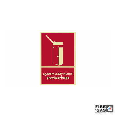 Znak System oddymiania grawitacyjnego 15x10 F116 pozwala na oznaczenie sposobu oddymiania klatki schodowej, co ma istotne znaczenie w przypadku wybuchu pożaru – oznaczenie to pozwala na usprawnienie działania ekipy ratowniczej. Znak F116 System oddymiania grawitacyjnego F116 15x10 jest znakiem fotoluminescencyjnym, dzięki czemu po zgaśnięciu światła znak ten przez pewien czas emituje światło, co pozwala na jego łatwiejsze dostrzeżenie. Znak System oddymiania grawitacyjnego F116 ma kształt prostokąta z czerwonym tłem i piktogramem przedstawiającym otwarte drzwi i system oddymiania nad nimi oraz napis pod obrazkiem „System oddymiania grawitacyjnego”. Znak F116 System oddymiania grawitacyjnego ma rozmiar 150x100 mm, a dzięki płycie sztywnej z jakiej jest wykonany jest znakiem trwałym. Znak dostępny jest również w formacie 220x150 mm.